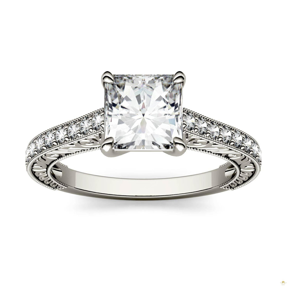 Don’t miss the detials on this exquisitly crafted moissanite ring. The sqaure cut center stone...