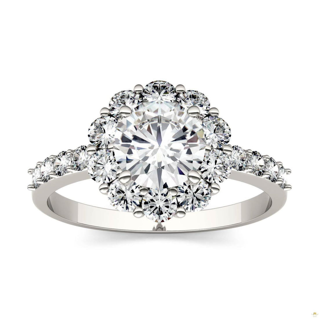 1.76 CTW Round Near-Colorless Moissanite Halo Engagement Ring in 14K White Gold