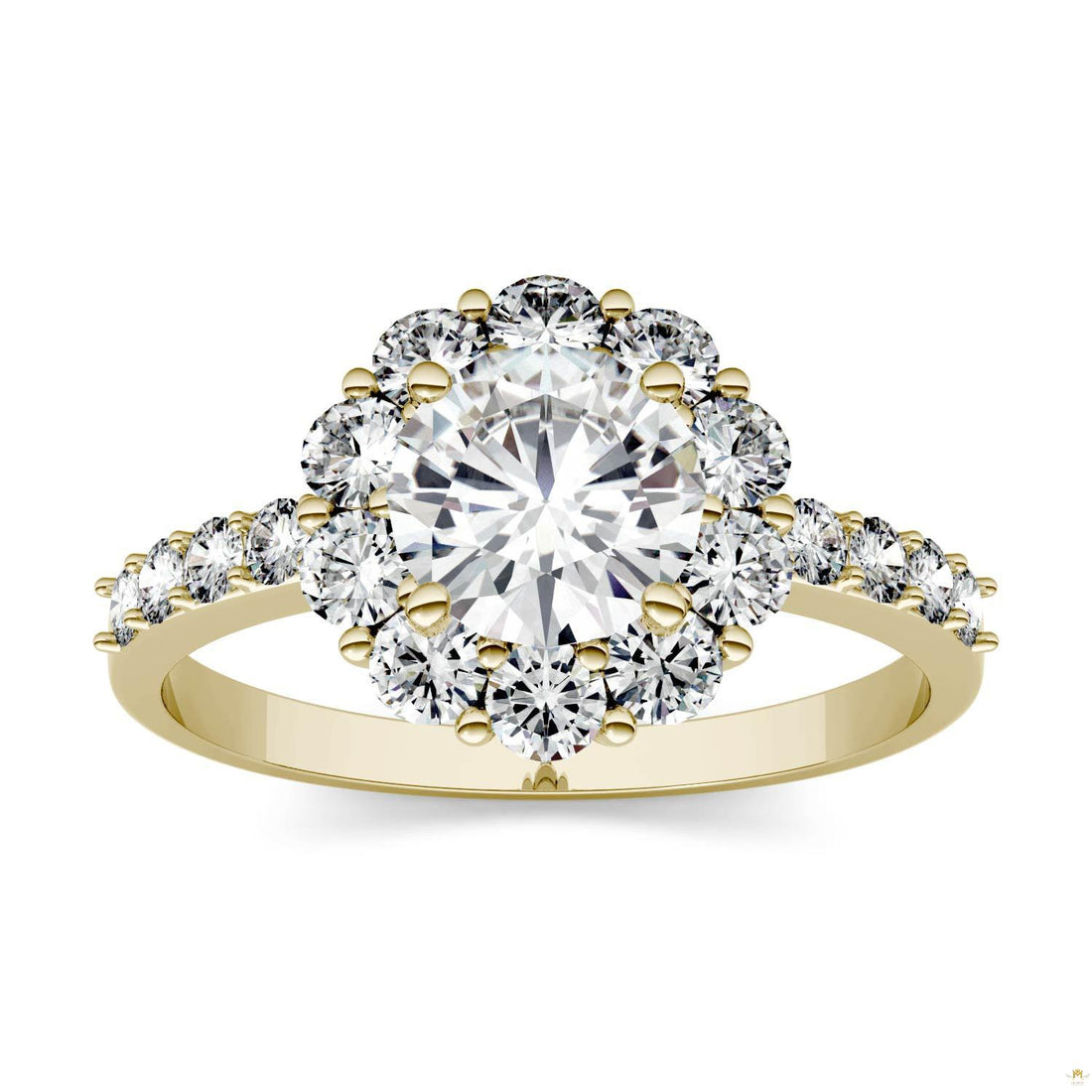 1.78 CTW Round Moissanite Halo Ring in 14K Yellow Gold