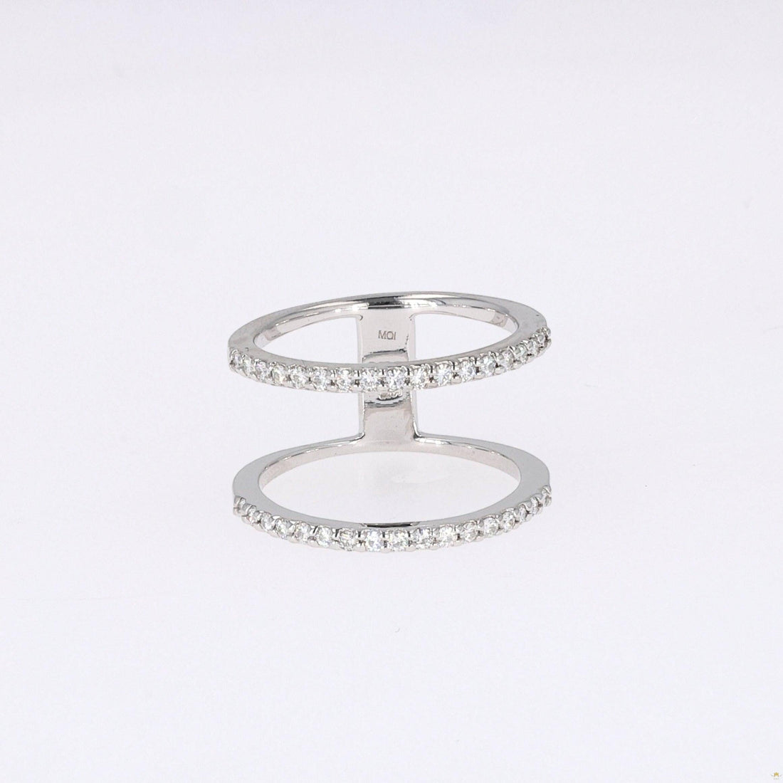 This 14K white gold, 0.34 carats moissanite fashion ring is simply elegant! With a wide...