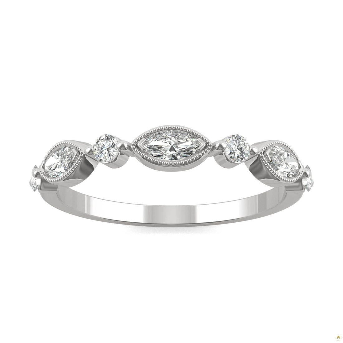 Update your stacker ring collection with this delicate band. Alternating marquise and round gemstones line...