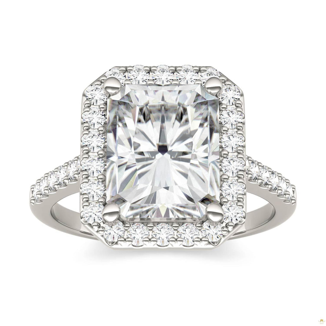 4.41 CTW Radiant Moissanite Halo Ring in 14K White Gold