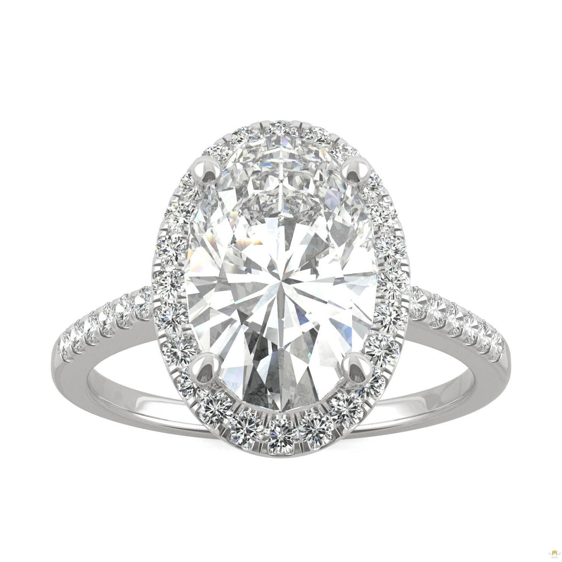 4.75 CTW Elongated Oval Moissanite Halo Ring in 14K White Gold