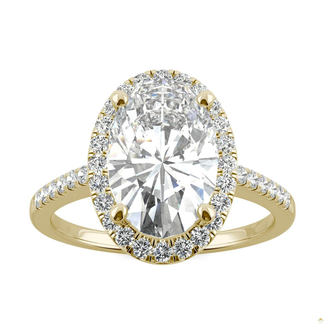 4.75 CTW Elongated Oval Moissanite Halo Ring in 14K Yellow Gold