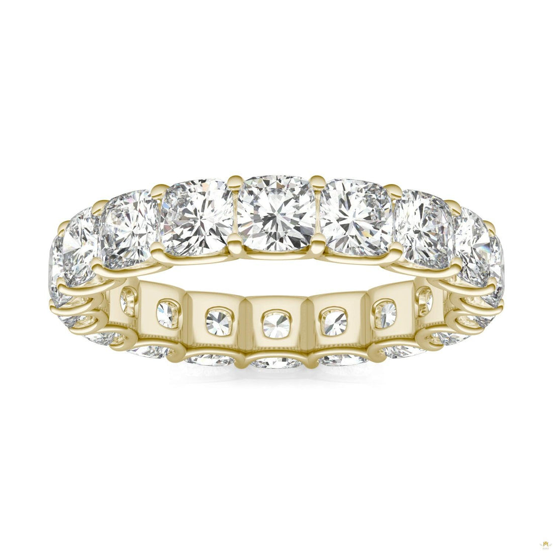 4.18 CTW Cushion Moissanite Eternity Band in 14K Yellow Gold
