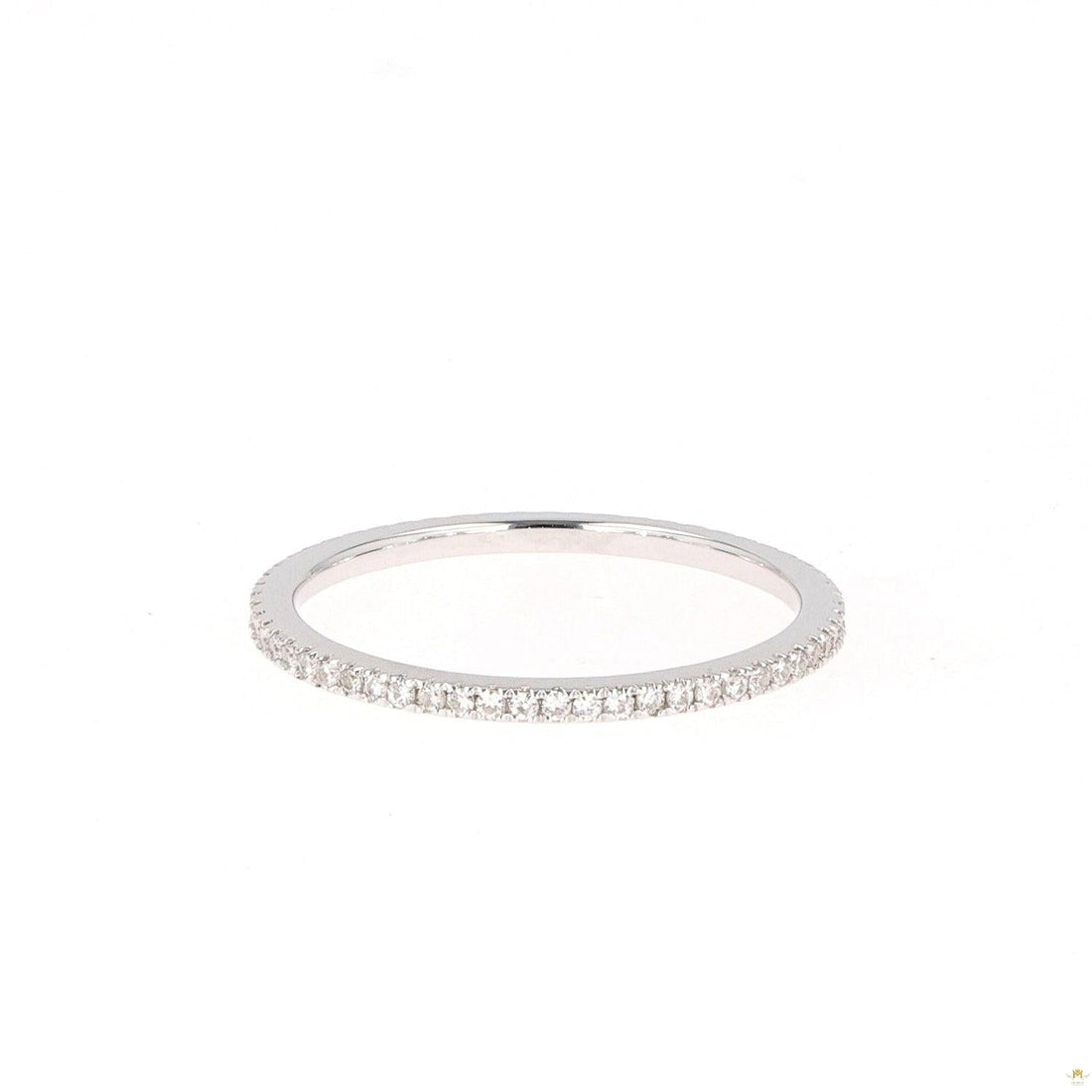 simplisticperfection! In 14K white gold, this moissanite eternity band is elegant and timeless.