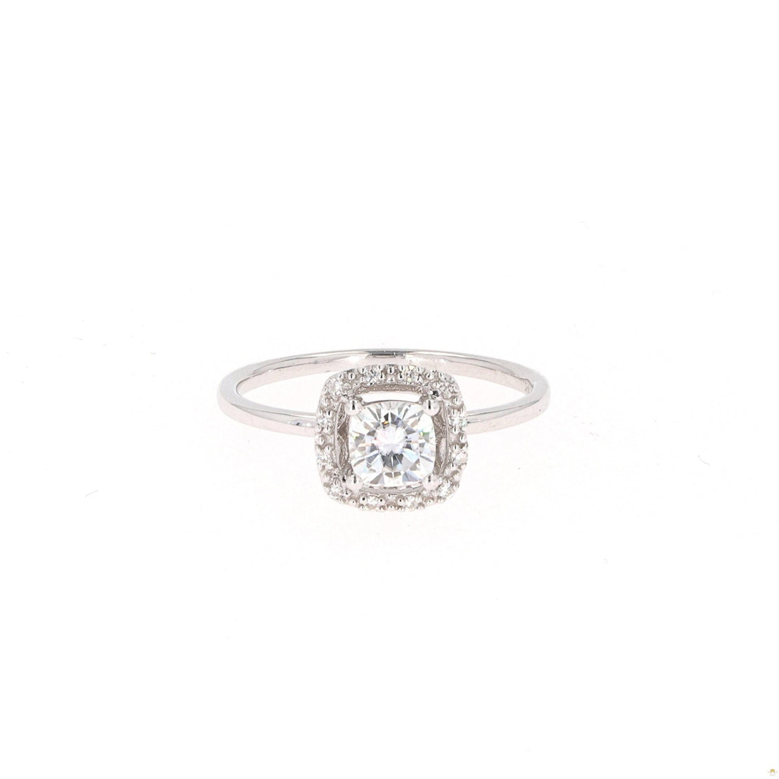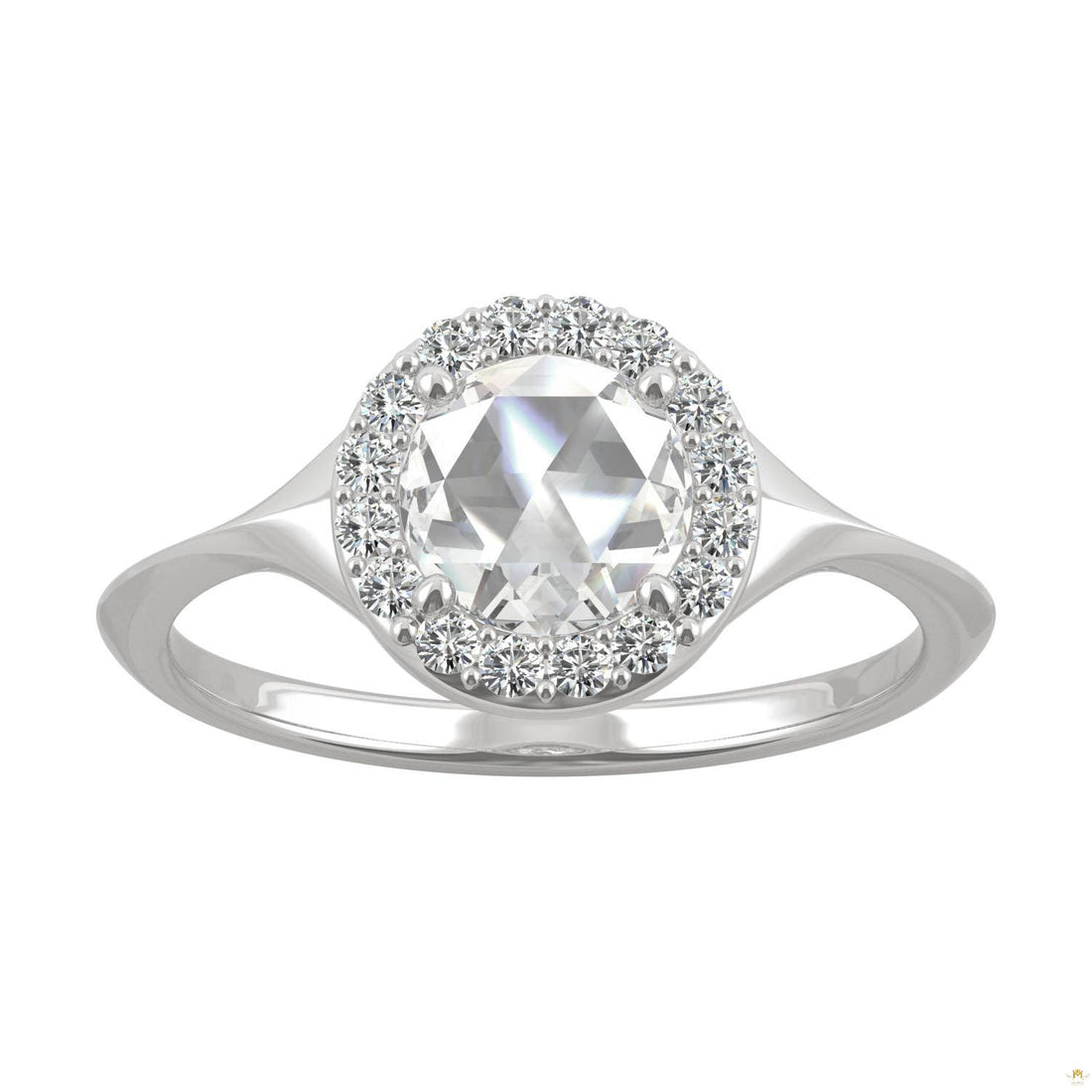 0.60 CTW Round Moissanite Halo Ring in 14K White Gold