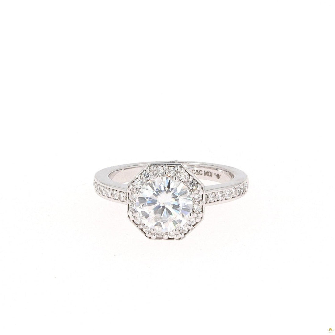 1.80 CTW Round Moissanite Engagement Ring in 14K White Gold