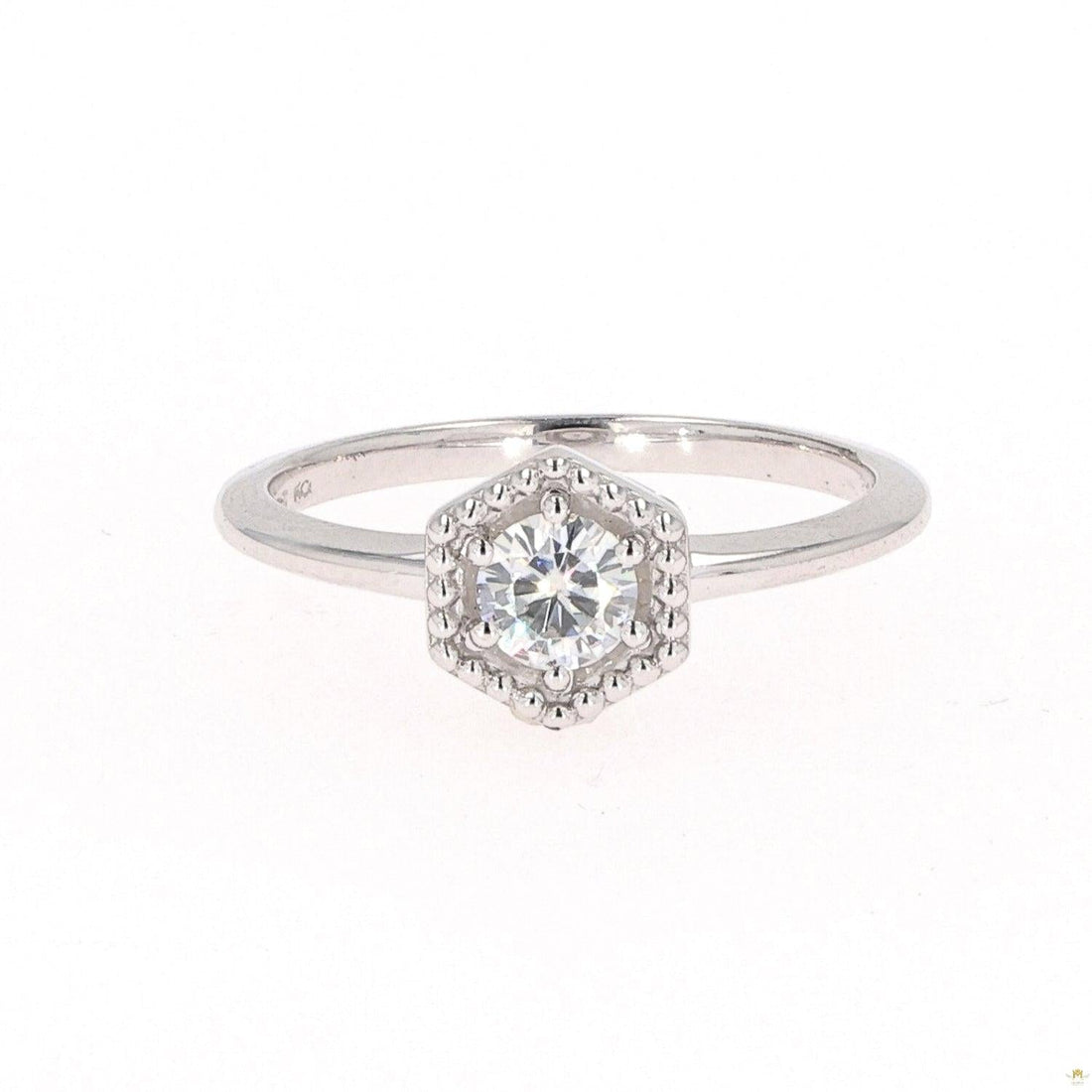 0.33 CTW Round Moissanite Hexagon Milgrain Halo Ring in Sterling Silver