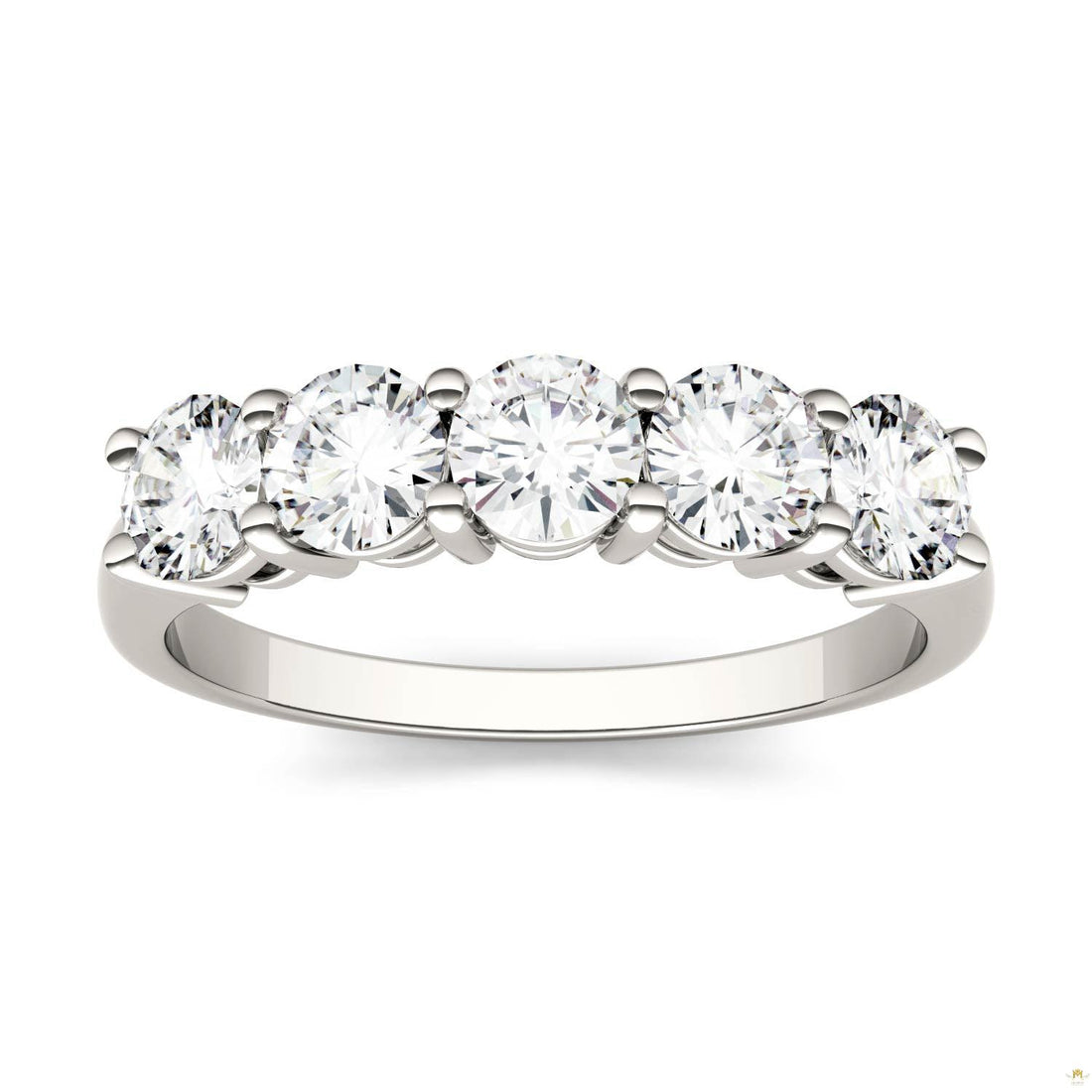 1.15 CTW Round Moissanite Five Stone Ring in 14K White Gold