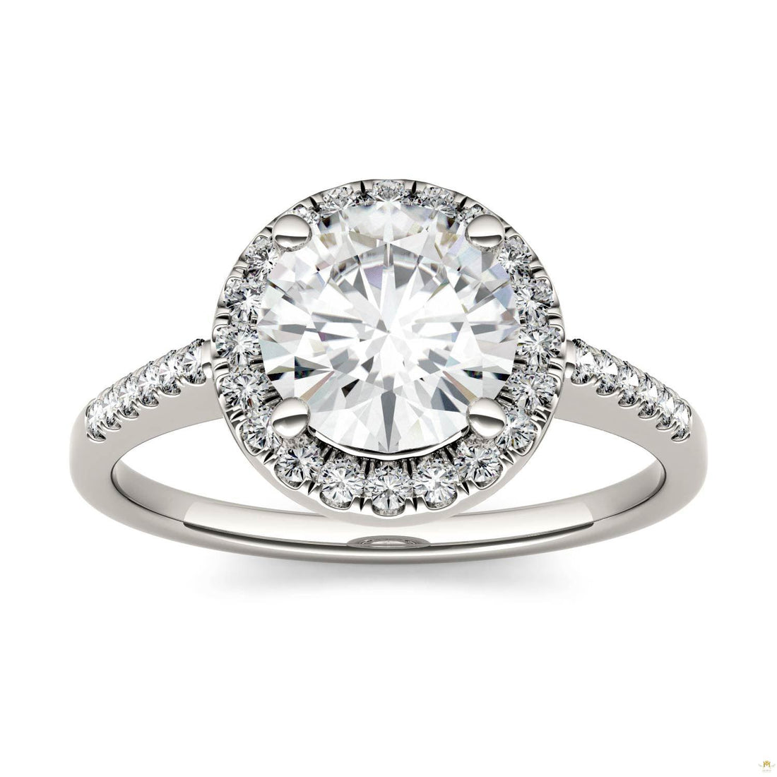 Treat her like an angel with this stunning halo Moissanite by Charles & Colvard® ring....