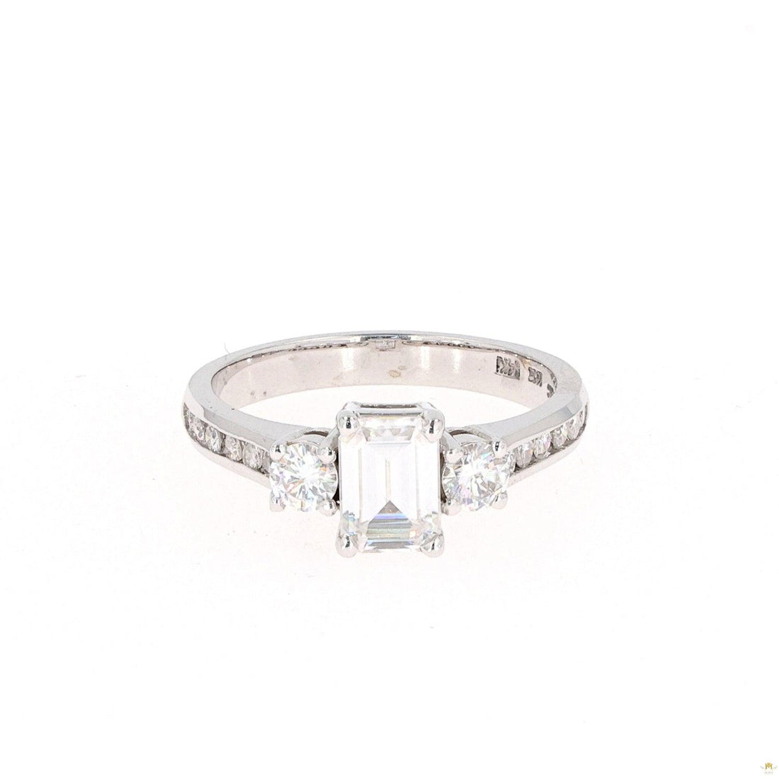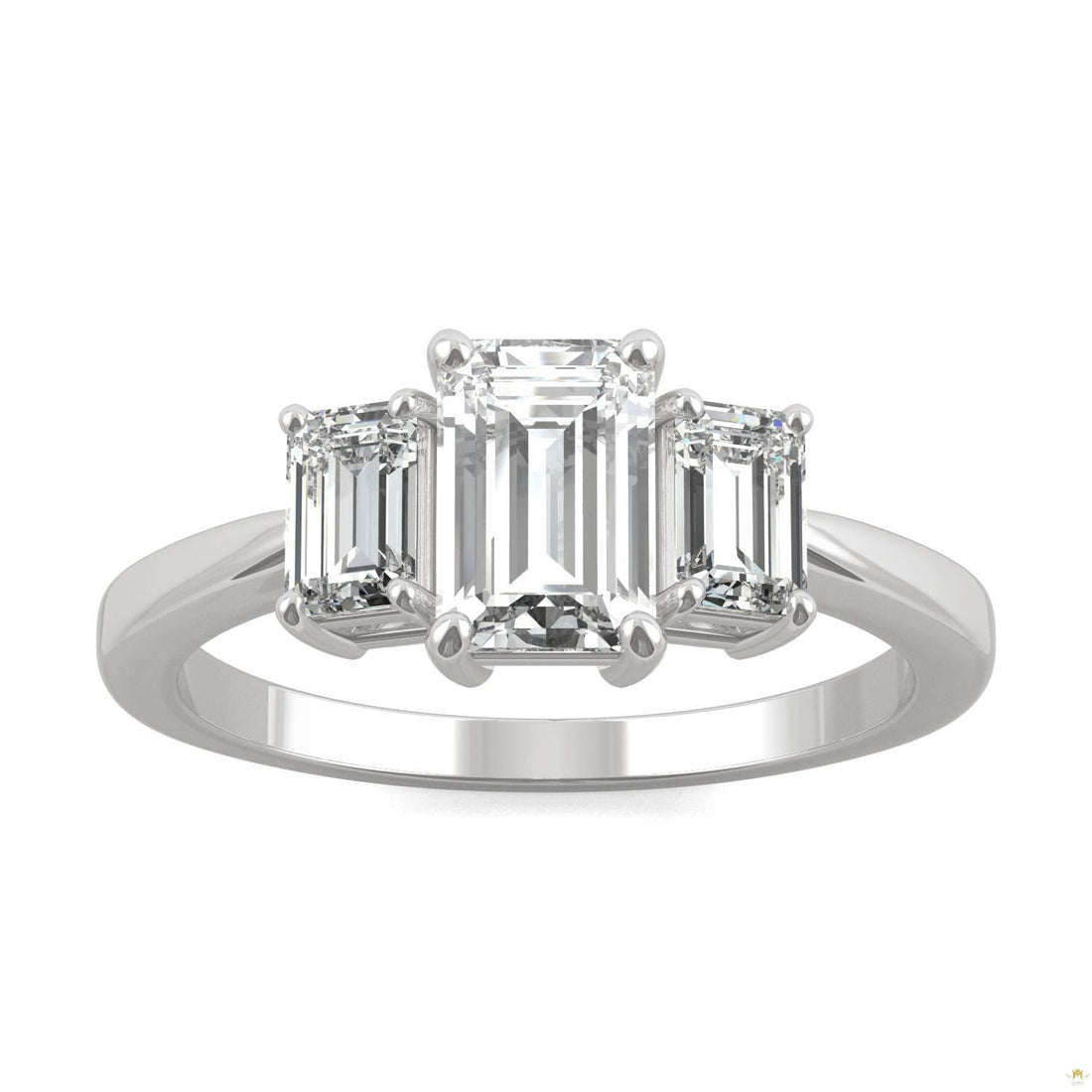 This breathtaking Emerald Moissanite Engagement Ring from Moissanite Outlet features three gorgeous stones set in...