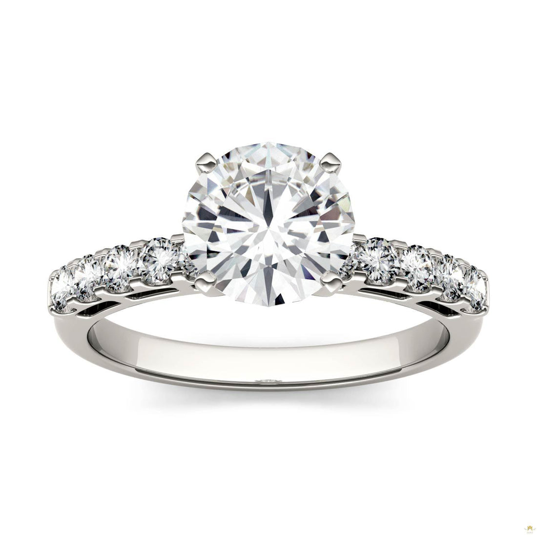 1.70 CTW Round Moissanite Engagement Ring in 14K White Gold