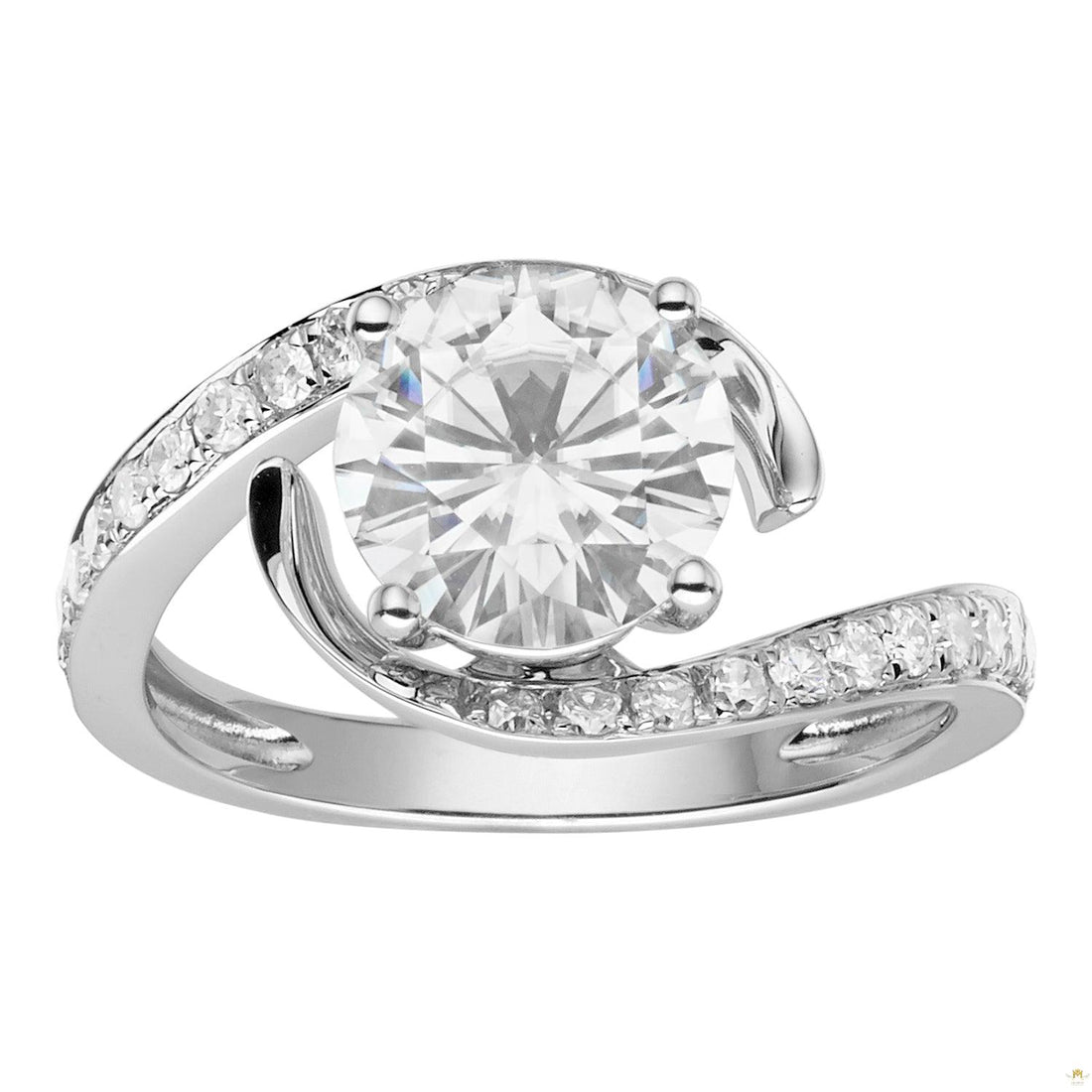 1.75 CTW Round Near-Colorless Moissanite Twist Solitaire With Accents Engagement Ring in 14K White Gold