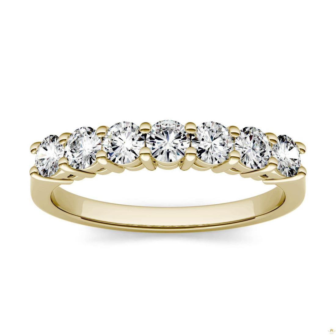 0.70 CTW Round Moissanite Seven Stone Ring in 14K Yellow Gold