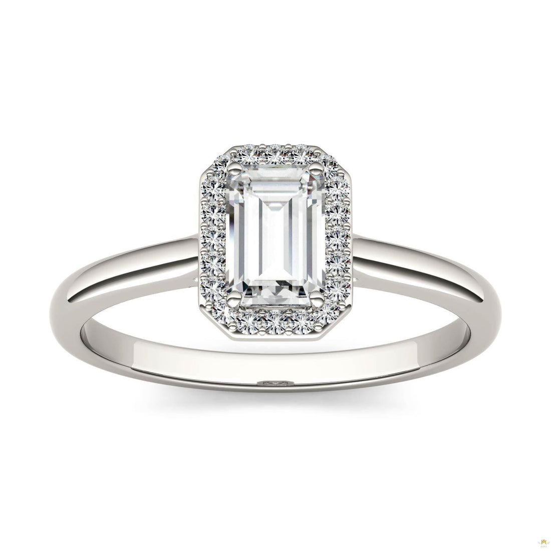0.68 CTW Emerald Moissanite Halo Ring in 14K White Gold