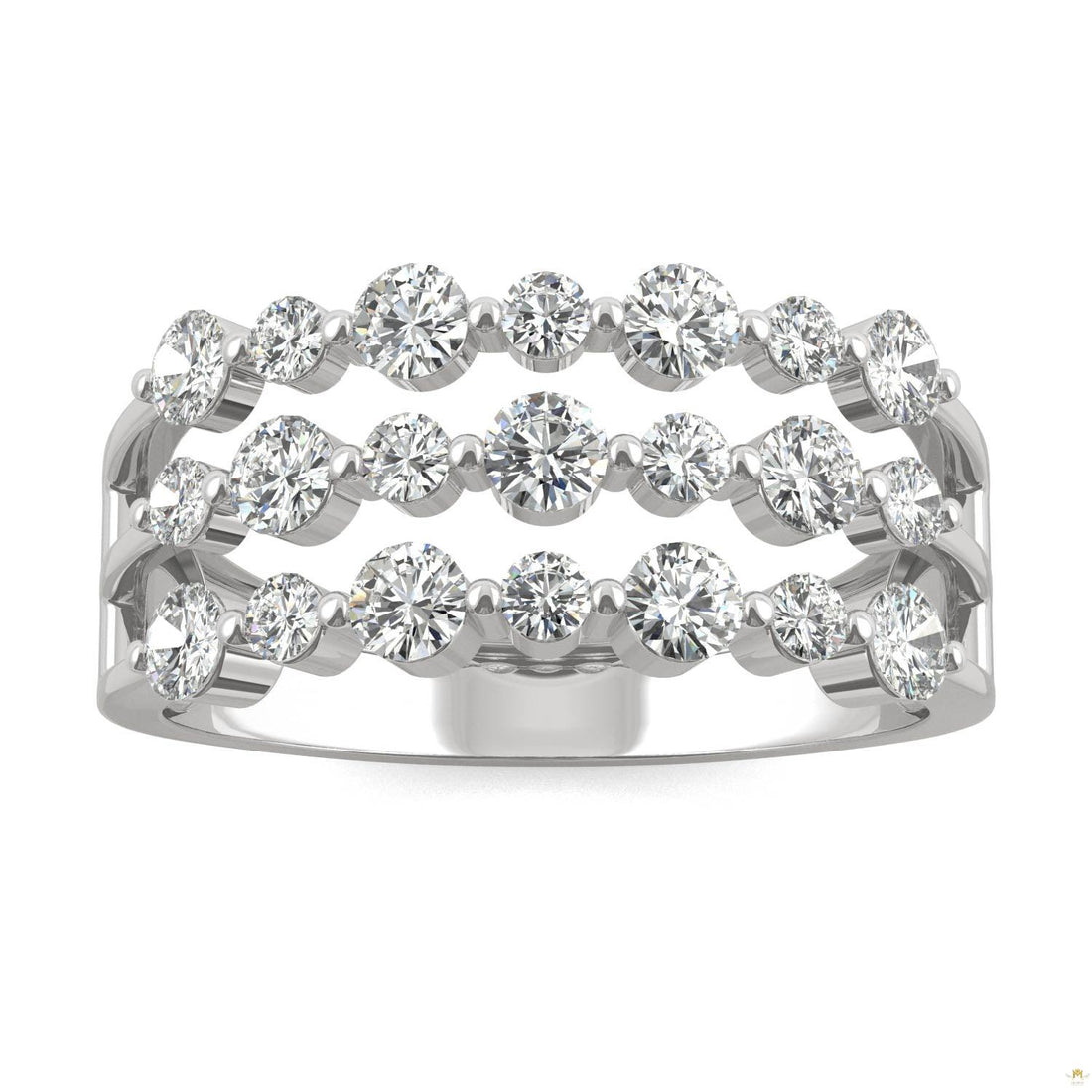 0.93 CTW Round Moissanite Three Row Ring in 14K White Gold
