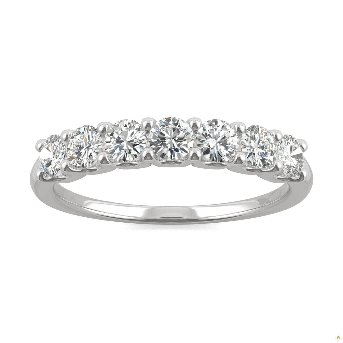 0.70 CTW Round Moissanite Seven Stone Ring in 14K White Gold