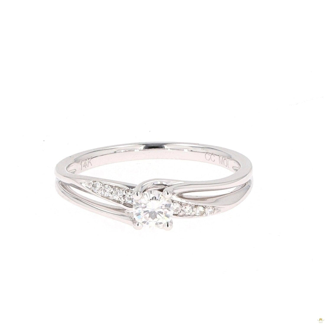 0.28 CTW Round Near-Colorless Moissanite Solitaire with Accents Engagement Ring in 14K White Gold