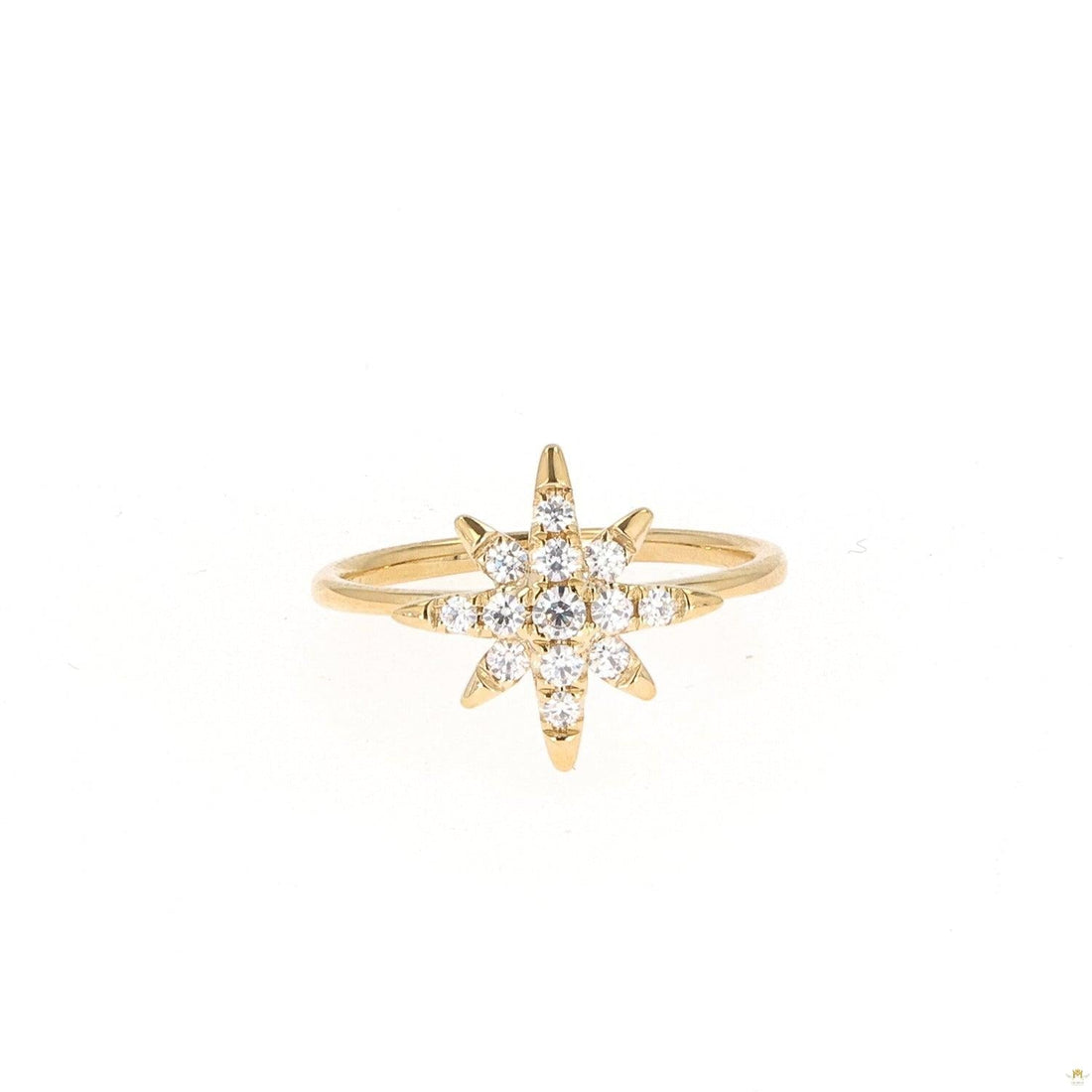 0.22 CTW Round Near-Colorless Moissanite Starburst Ring in 14K Yellow Gold
