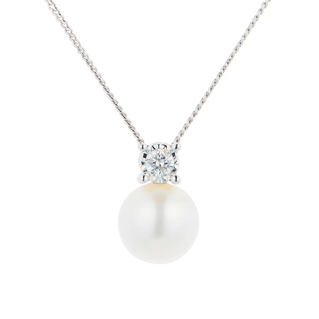9ct White Gold Diamond And 6.5-7mm Fresh Water Pearl Pendant