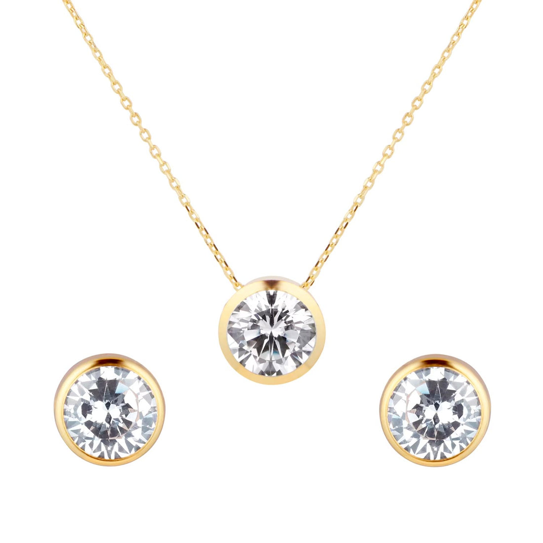 9ct Yellow Gold Bezel Set Pendant & Earring Set
