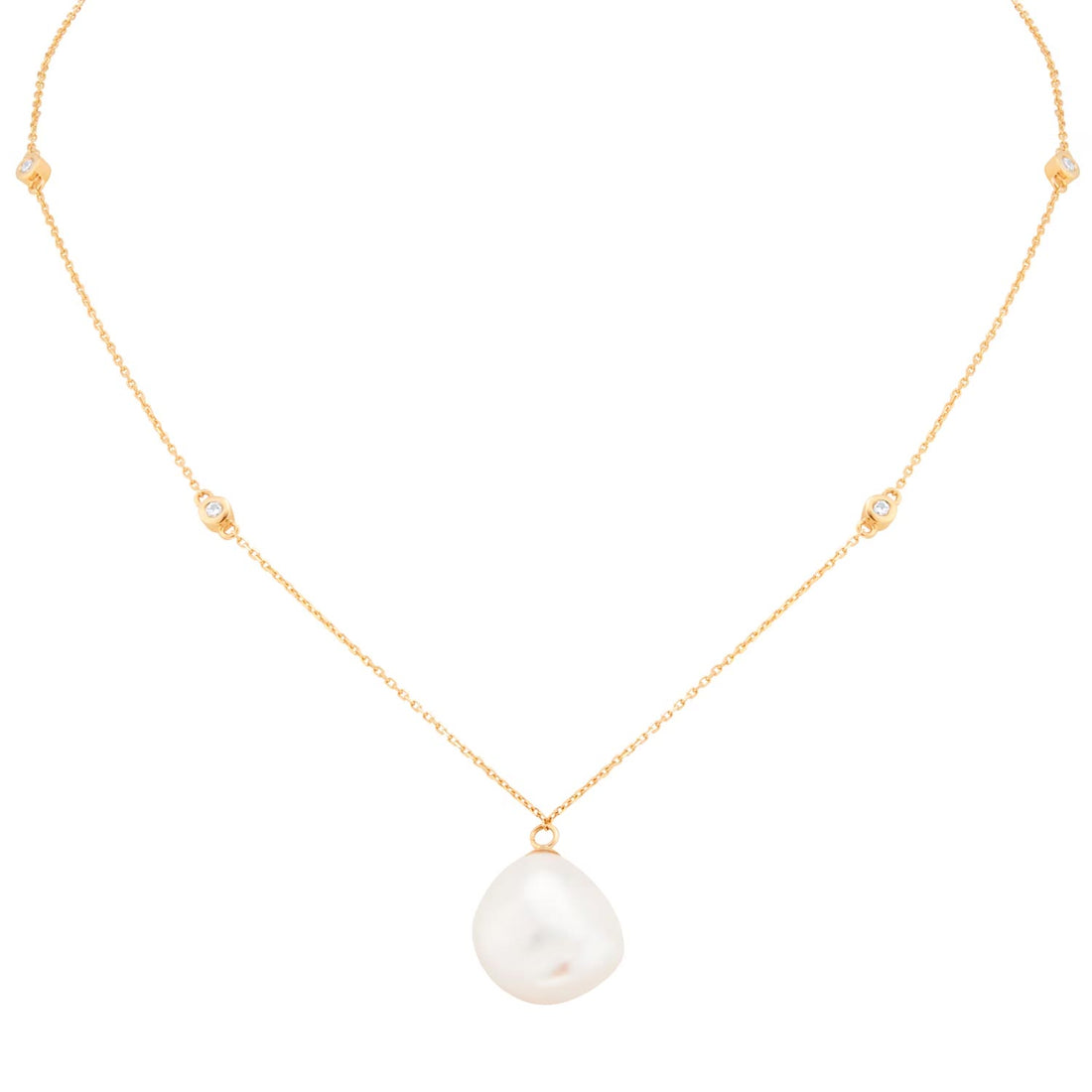 18ct Yellow Gold 0.10cttw Diamond & Baroque Pearl Pendant