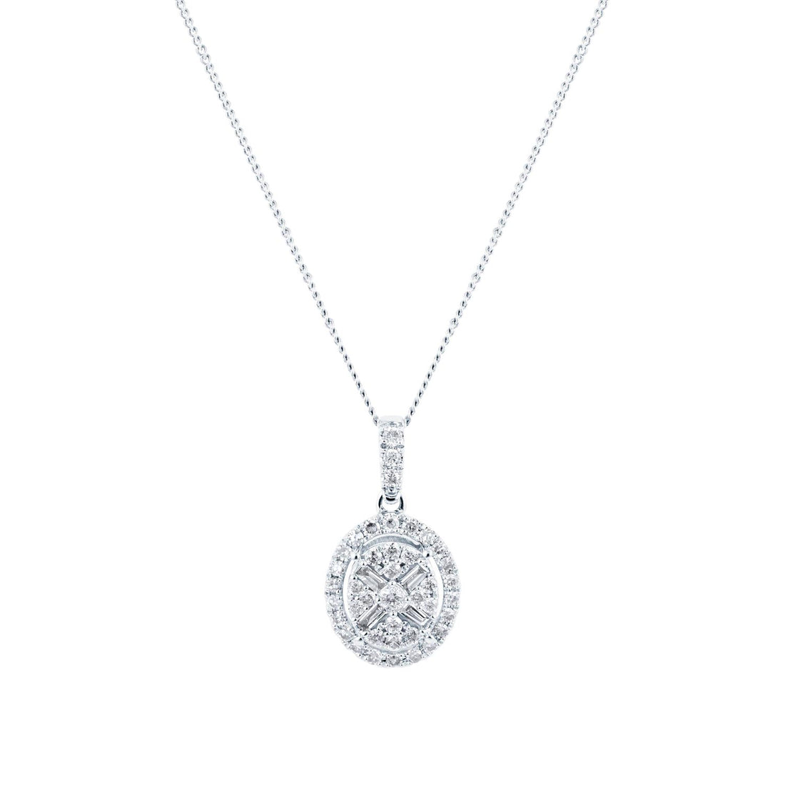 9ct White Gold 0.25ct Diamond Oval Cluster Pendant