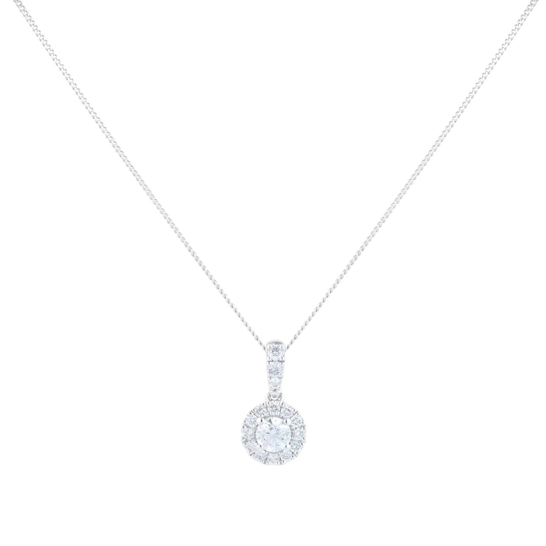9ct White Gold 0.40cttw Round Halo Pendant