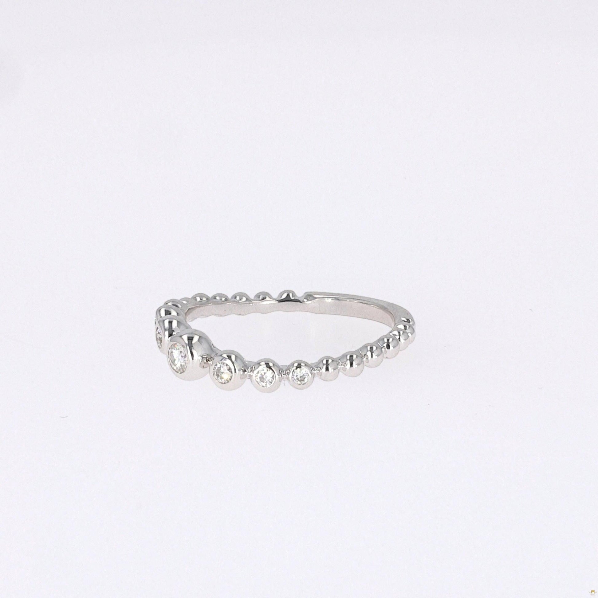 With whimsical movement and an art deco silhouette, this 0.18 carats moissanite band, in 14K white gold, is the simple but playful piece your jewelry collection’s missing.