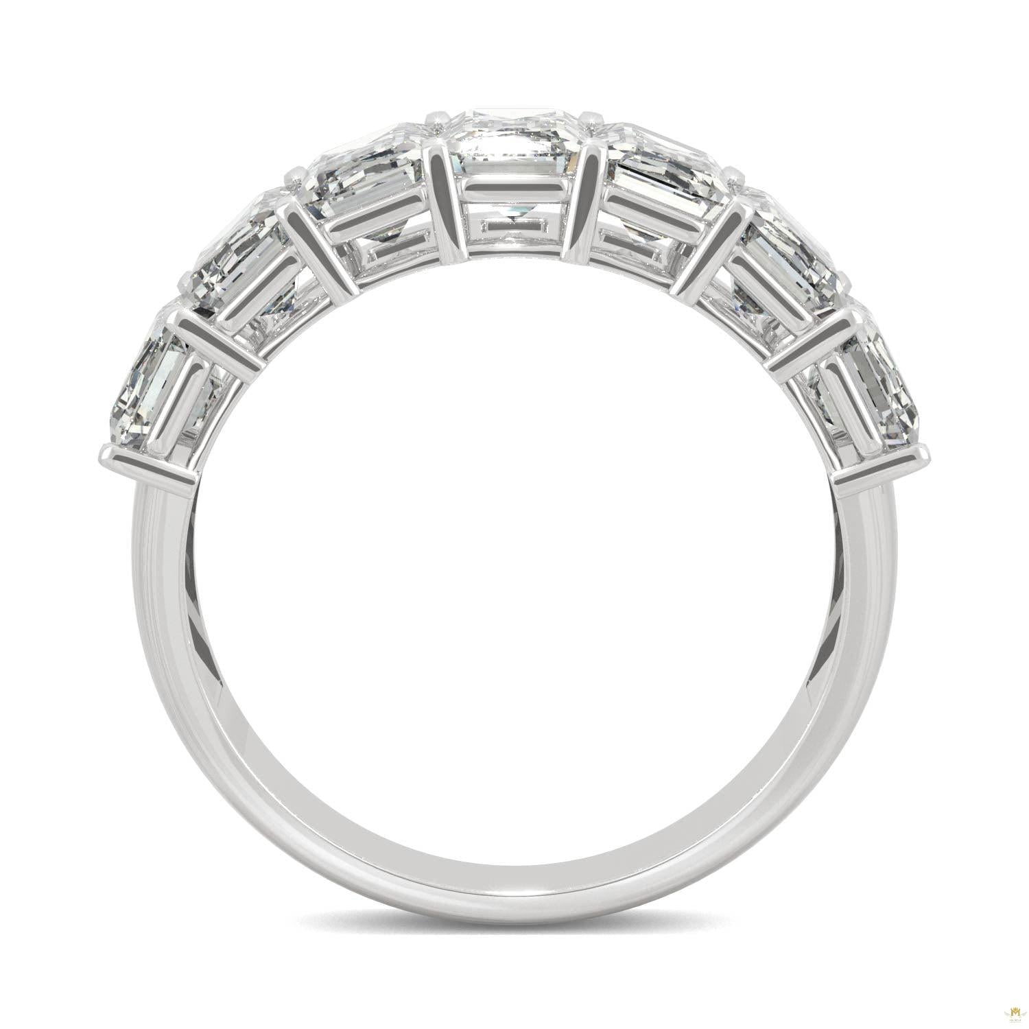 Brilliance meets elegance. Precision lends to chic sophistication as seven perfect emerald cut gems line the top of this ring.