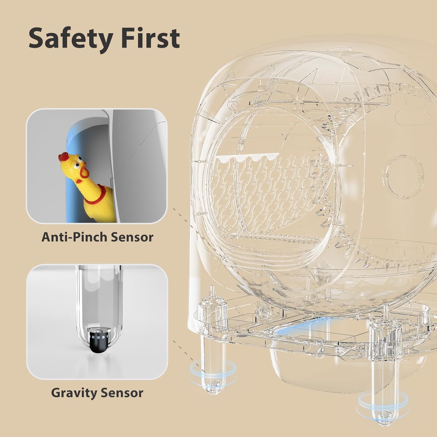 - š¾š”ššš£ š¾ššš¢š„šš¤š£: Two-stage tilting method combines passive & proactive operations (i.e. gravity sift and catapult dump) for thorough cleaning; leaves fewer scraps behind, dislodges sticky clumps, reduces dust created from abrasion, and minimizes stains trailed by runny poops